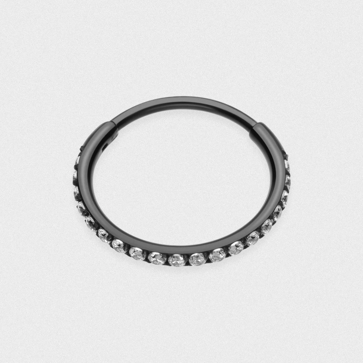 These Bejewelled Black PVD implant-grade titanium hinged segment rings are an absolute staple piece of jewellery in anyone’s collection. Body piercing rings can be worn in pretty much any piercing from nose rings to simple earrings, we’ve got you covered with the huge selection of available gauge sizes and diameters to ensure the perfect fit!
