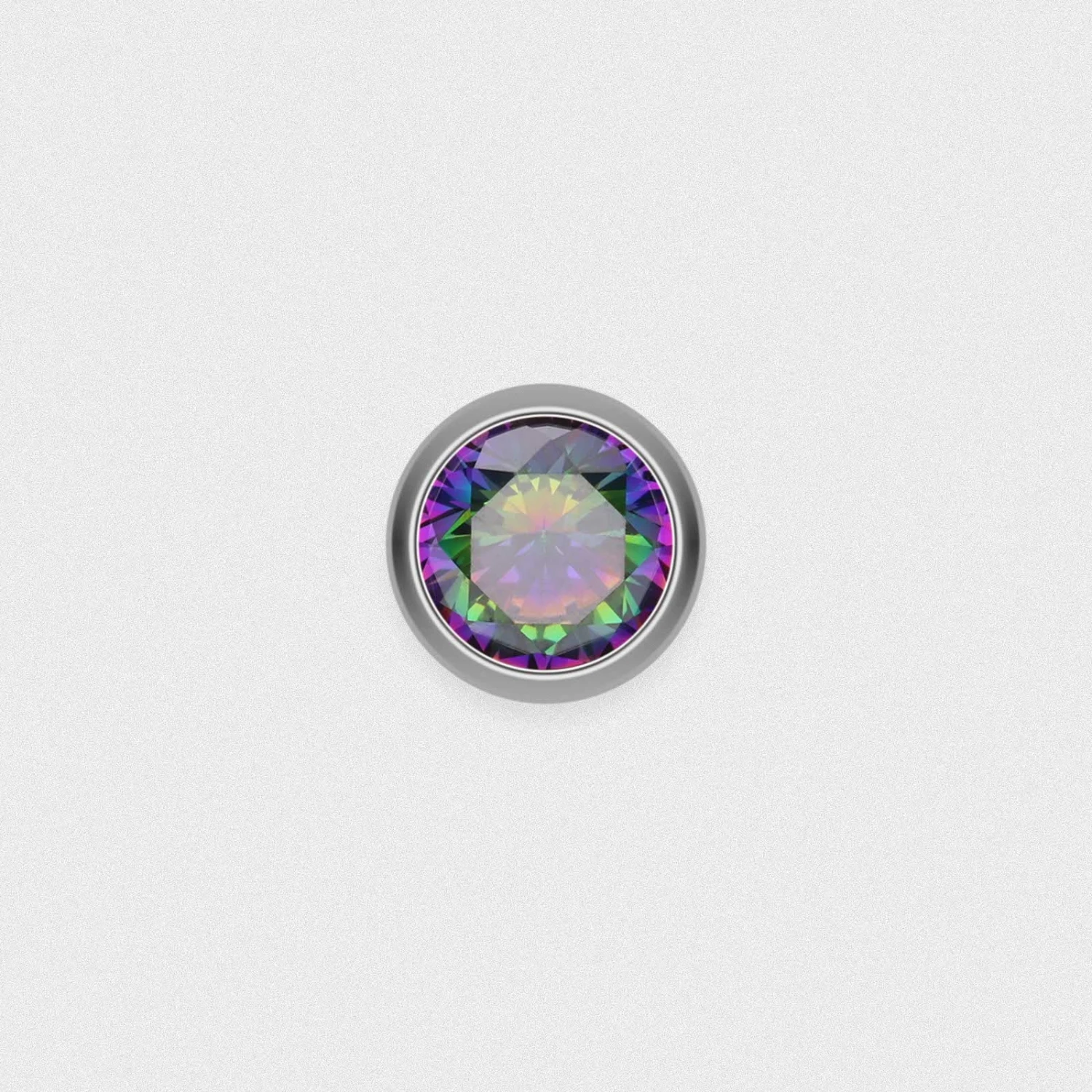These bezel-set implant-grade titanium threadless tops contain the most stunning Vitrail Medium Cubic Zirconia design. ASTM F-136 titanium is the ultimate material for new and healed piercings, guaranteeing no reactions or irritation.