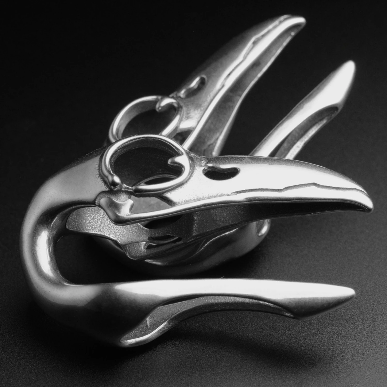 In striking surgical steel; these shiny skulls are definitely a statement piece that will be sure to turn heads. You’ll need at least lobes stretched to 12mm (1/2″) to wear these three-dimensional bird skull ear weights.