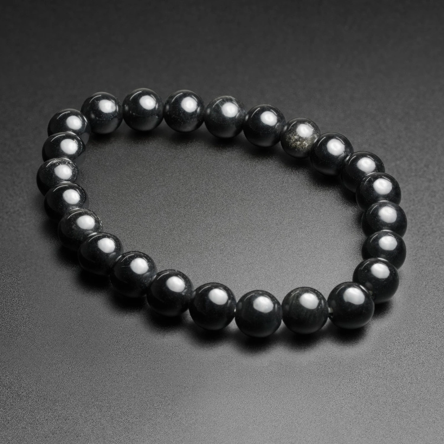 Beautifully Black Obsidian polished beads on a strong, stretchable bracelet. This makes the perfect pairing with our selection of Black stone plugs, weights, rings and pendants.