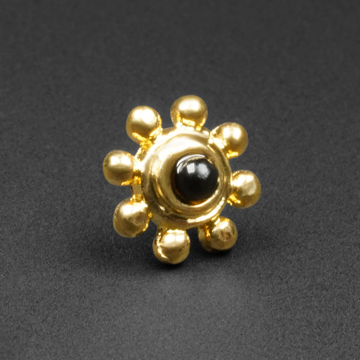 Swap out your bland jewellery with these stunning Black onyx threadless tops. Handcrafted from Italian brass and plated with 18k yellow gold.