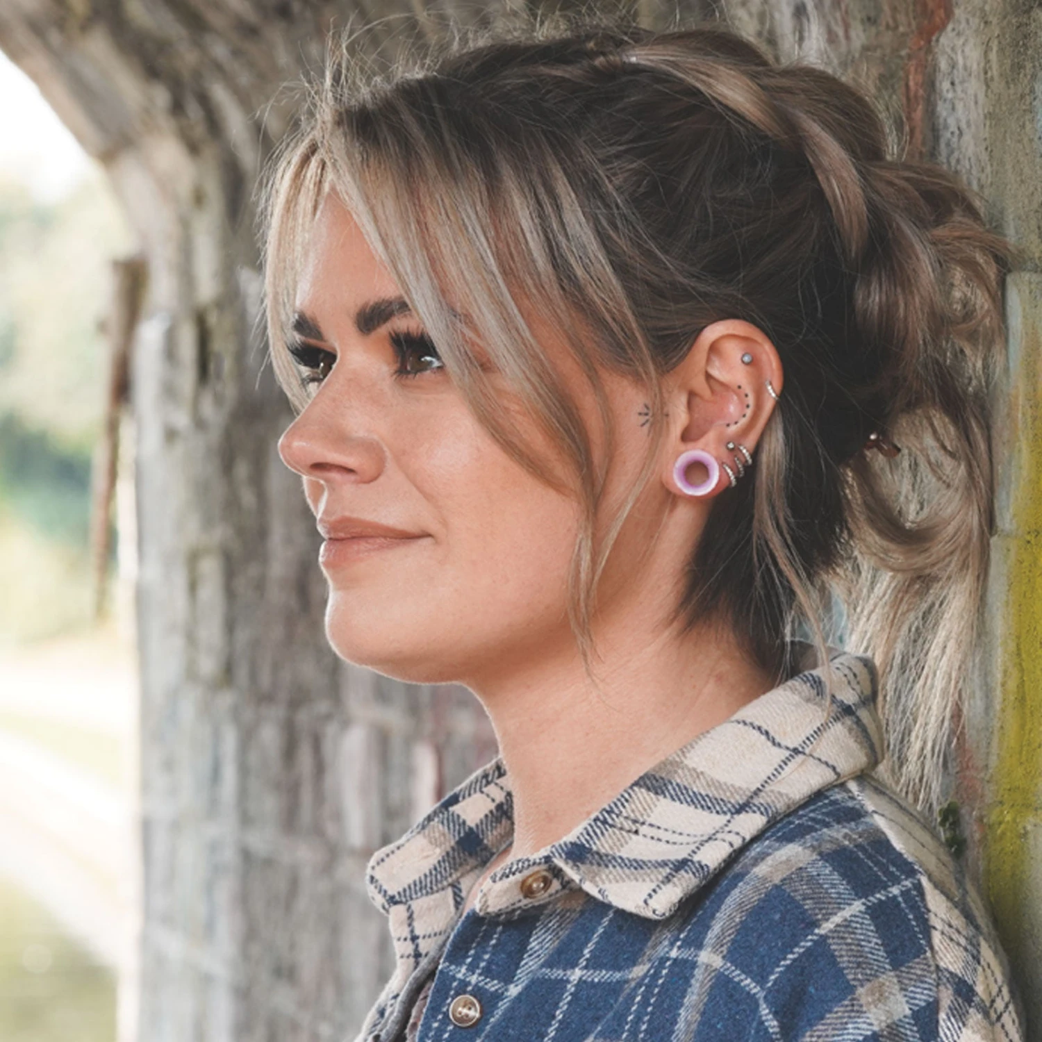 Check out these blossom silicone flesh tunnels with a stunning pearl finish. Silicone tunnels, even double flares are super easy to insert and really comfortable to wear. Perfect for hat, helmet, headphone-wearing and sleeping! Allowing you to wear your stretchers with style in all occasions.