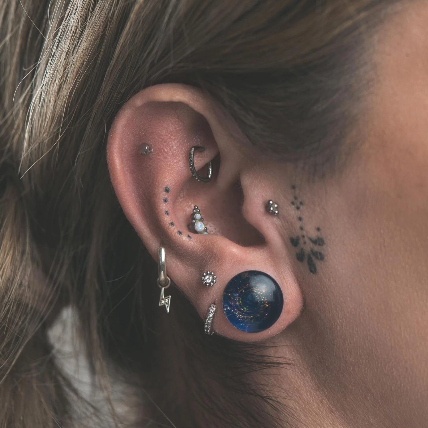 Perfectly smooth double flare glass plugs with an out of this world blue galaxy swirl design.