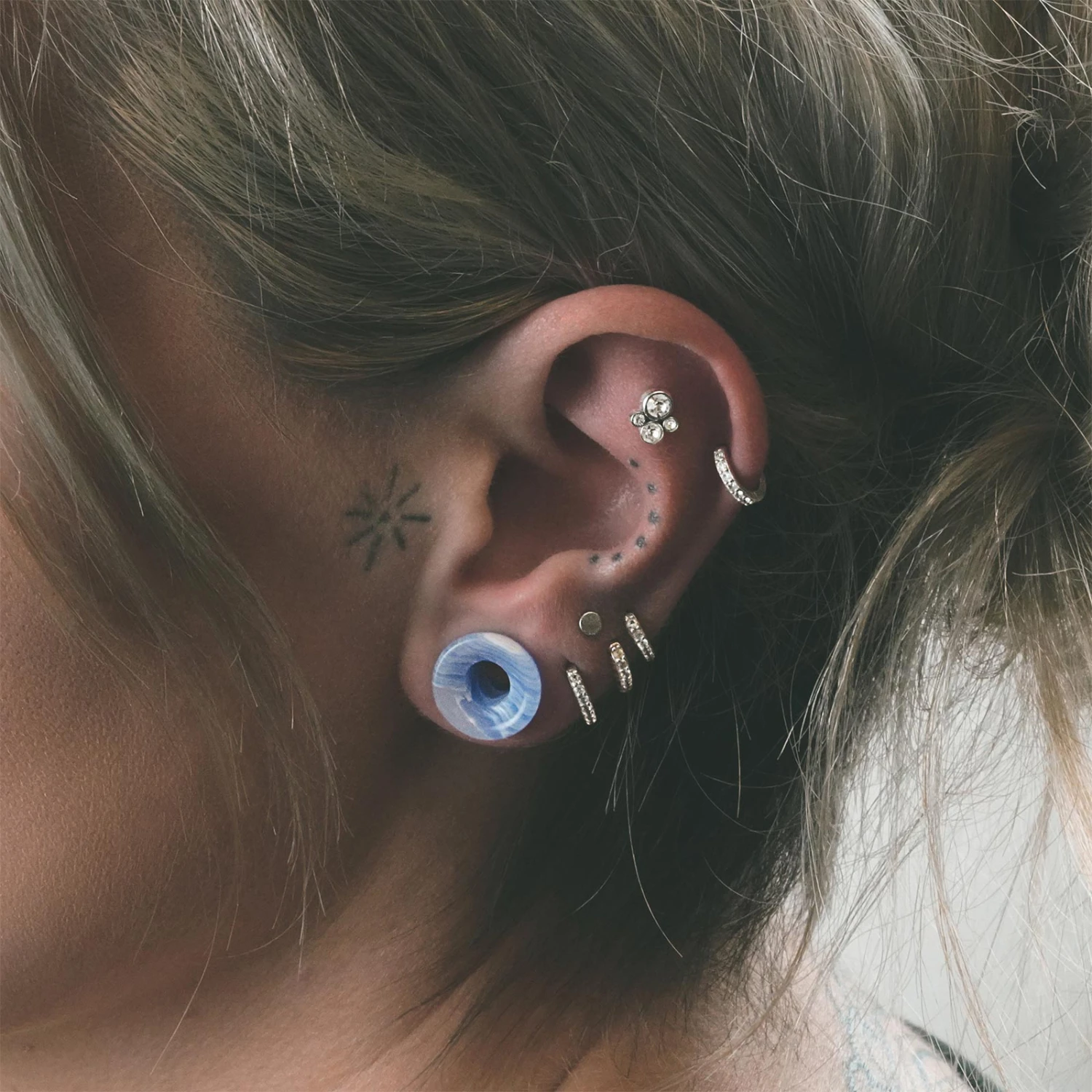Our stone plugs are the best in the business! We are now proud to introduce a range of stone flesh tunnels. These blue lace agate flesh tunnels come in a concave finish making them super lightweight for stone jewellery. Immaculate polish throughout.