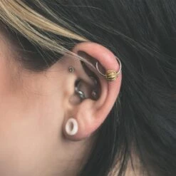 Repeating Circles Brass & Surgical Steel BCR Ball Closure Ring