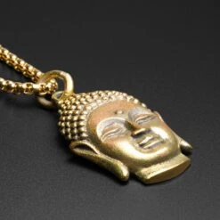 Buddha Head Brass Pendant With 18k Gold Box Chain