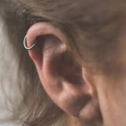 These crescent-shaped implant-grade titanium hinged segment rings are perfect for your daith piercing but can be worn in numerous body piercings including the septum!
