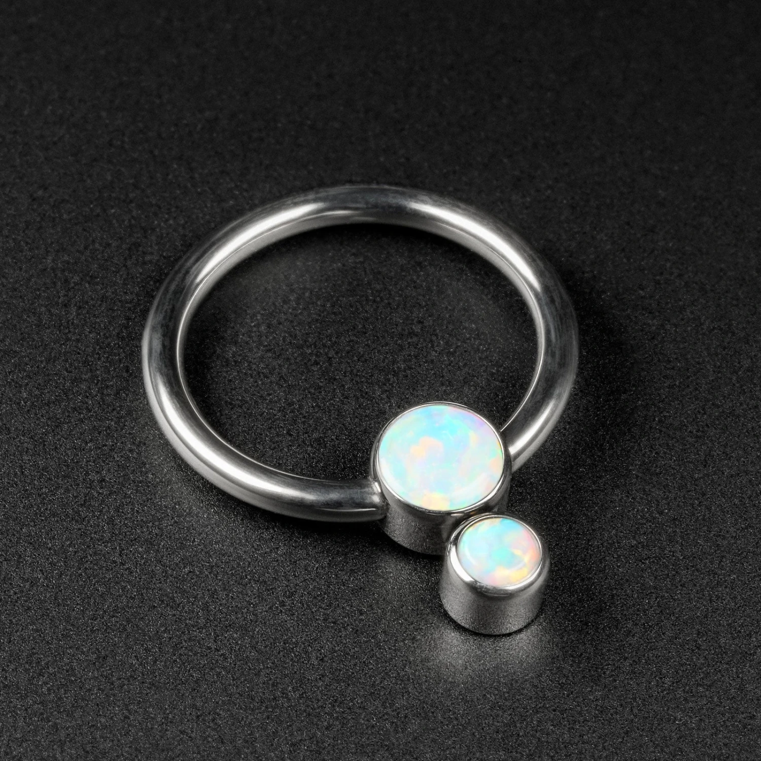 SIBJ stocks some of the most unique pieces of body jewellery on the market and these beautiful Double Fire & Snow Synth Opal Titanium BCR’s are no exception!