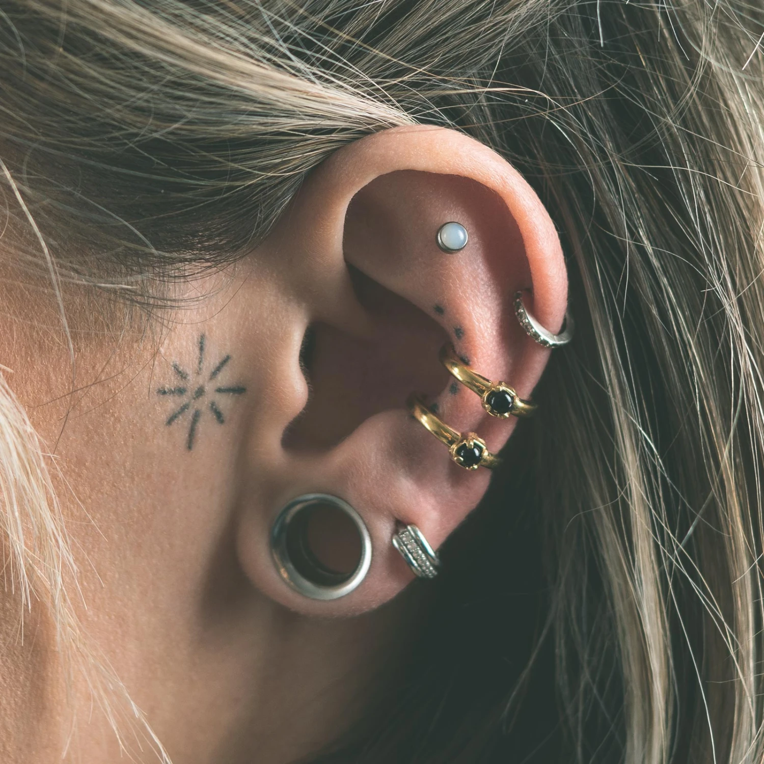 Double Hoop With Black Onyx Brass Ear Cuff