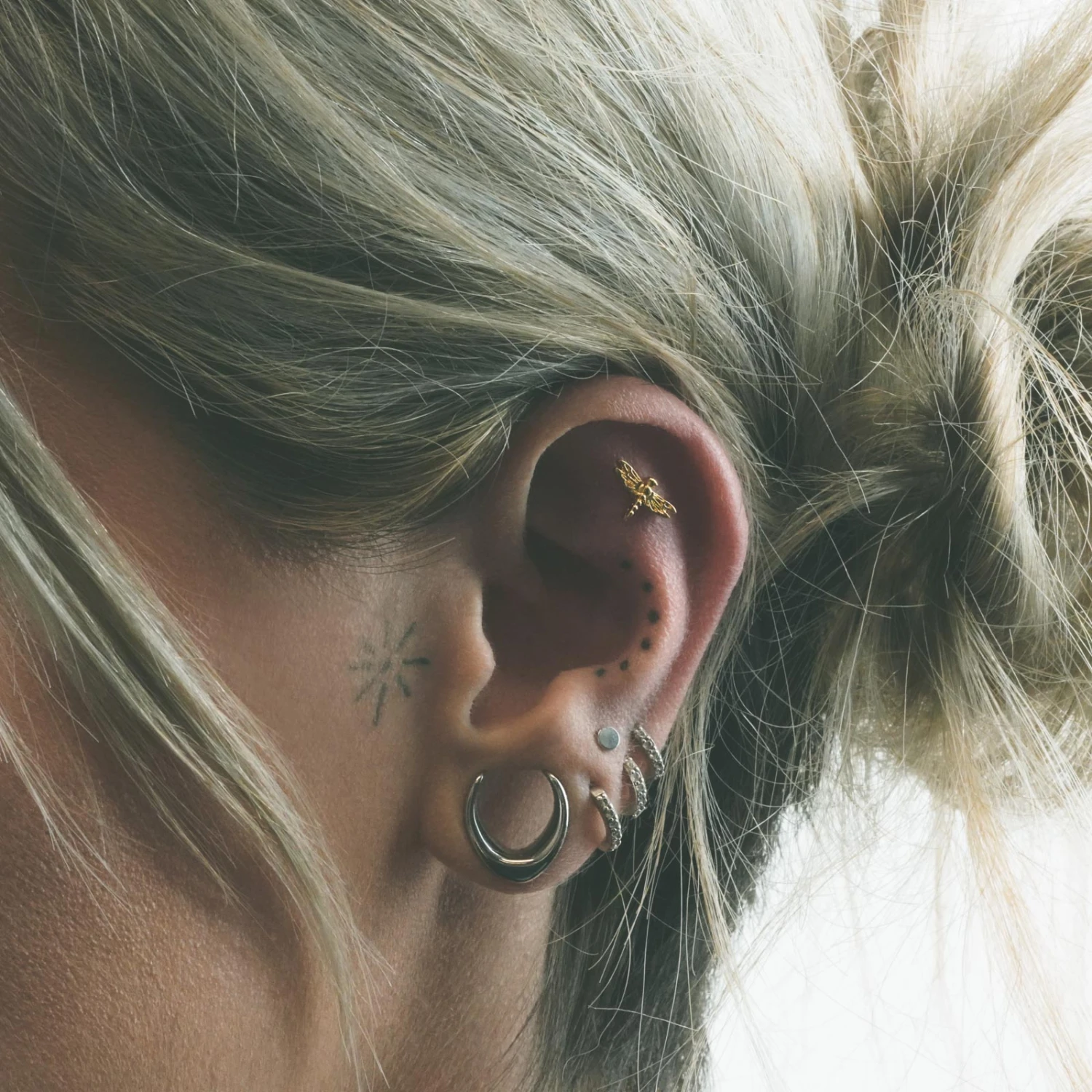 Our threadless tops make switching up your jewellery style fast and safe. Simply insert the top into your threadless bar halfway and bend slightly. This small bend will give just enough friction to hold the top in place, the larger the bend the more resistance.