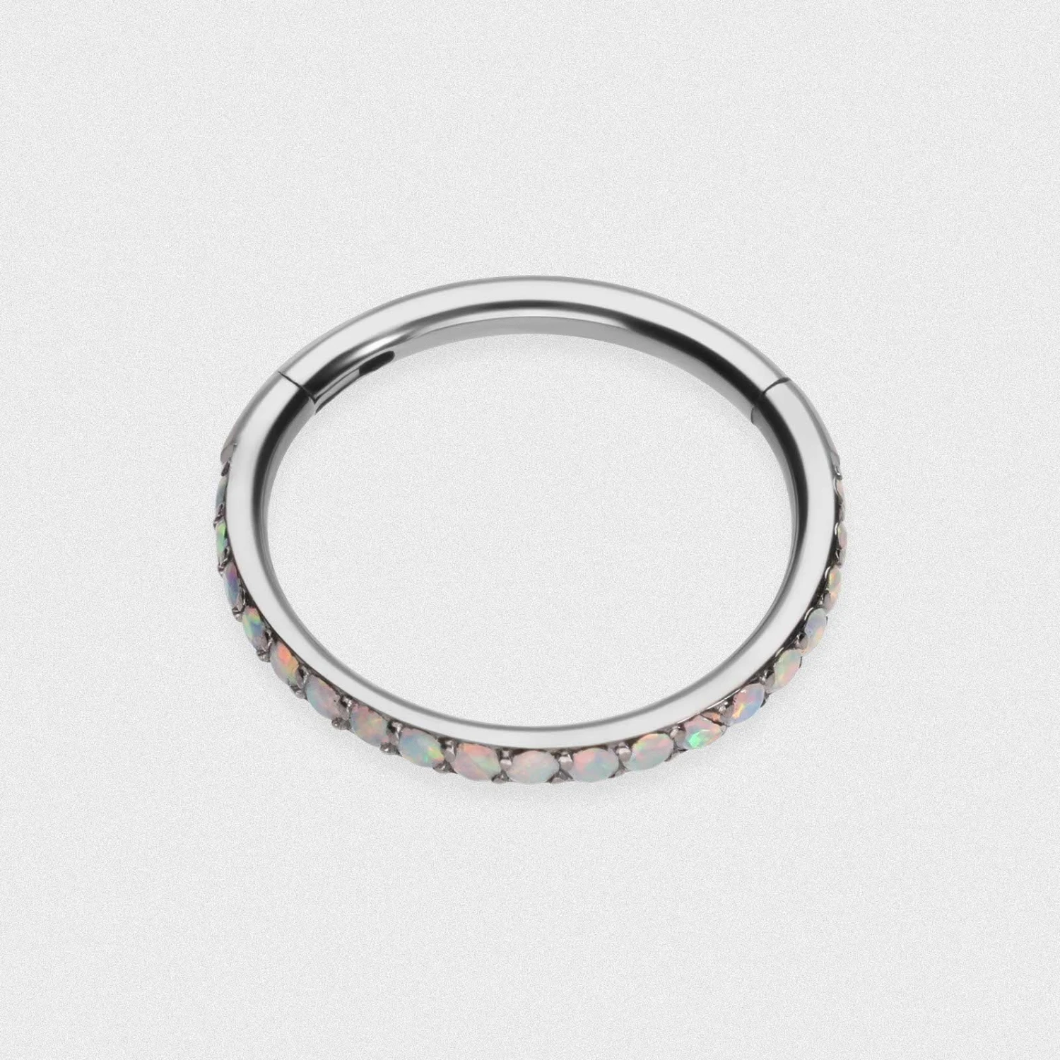 These Edged Fire & Snow Synth Opal implant-grade titanium hinged segment rings are an absolute staple piece of jewellery in anyone’s collection. Body piercing rings can be worn in pretty much any piercing from nose rings to simple earrings, we’ve got you covered with the huge selection of available gauge sizes and diameters to ensure the perfect fit!
