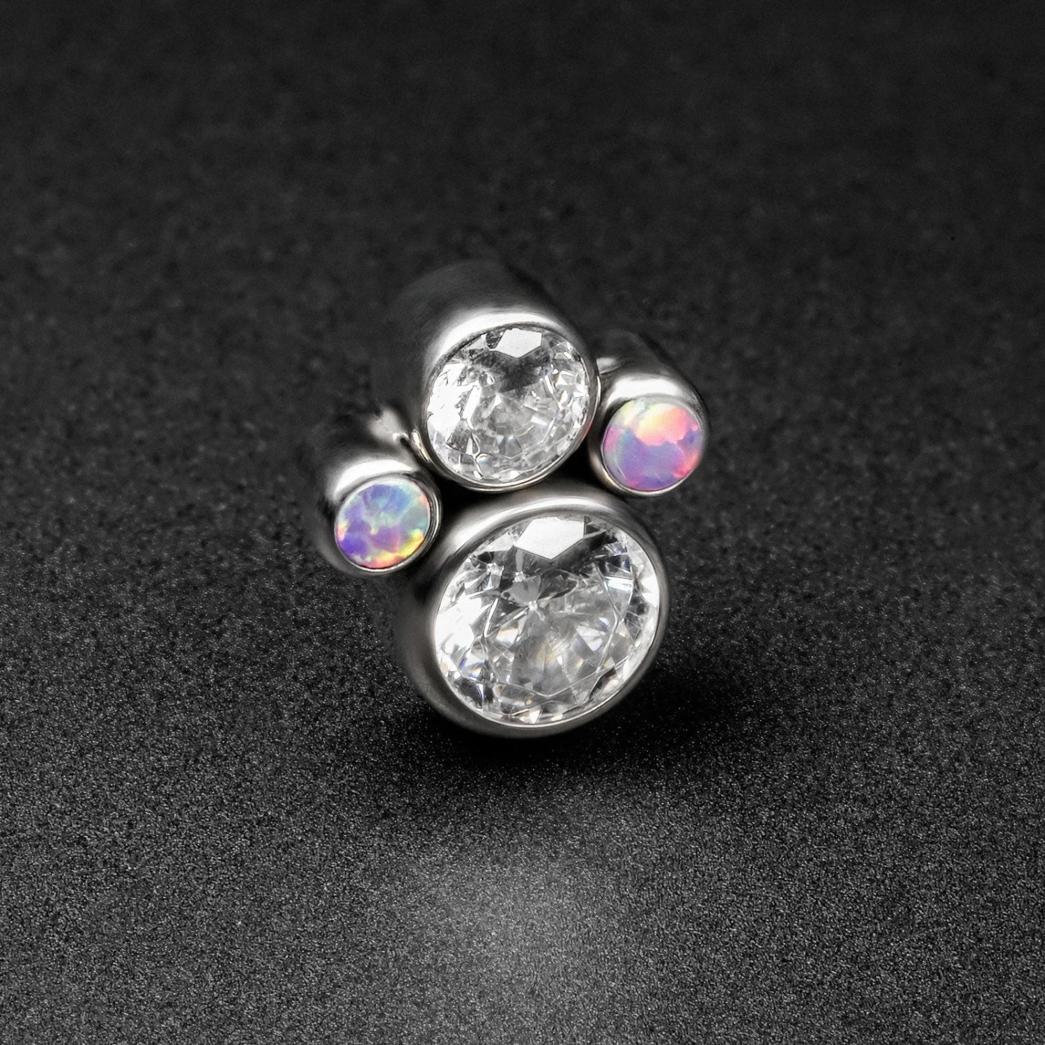 These Synthetic Opal Quad Cluster implant-grade titanium threadless tops contain the most mesmerising Flash Lavender design. ASTM F-136 titanium is the ultimate material for new and healed piercings, guaranteeing no reactions or irritation.