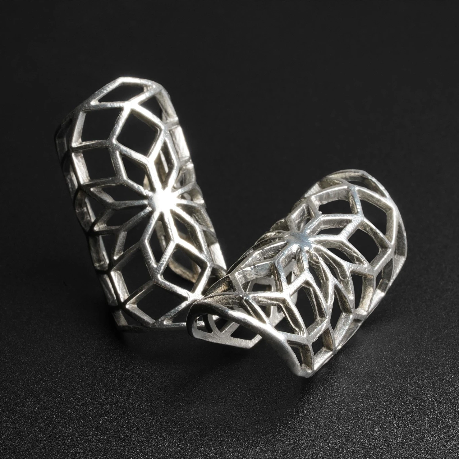 Geometric Flower White Brass Ear Cuff