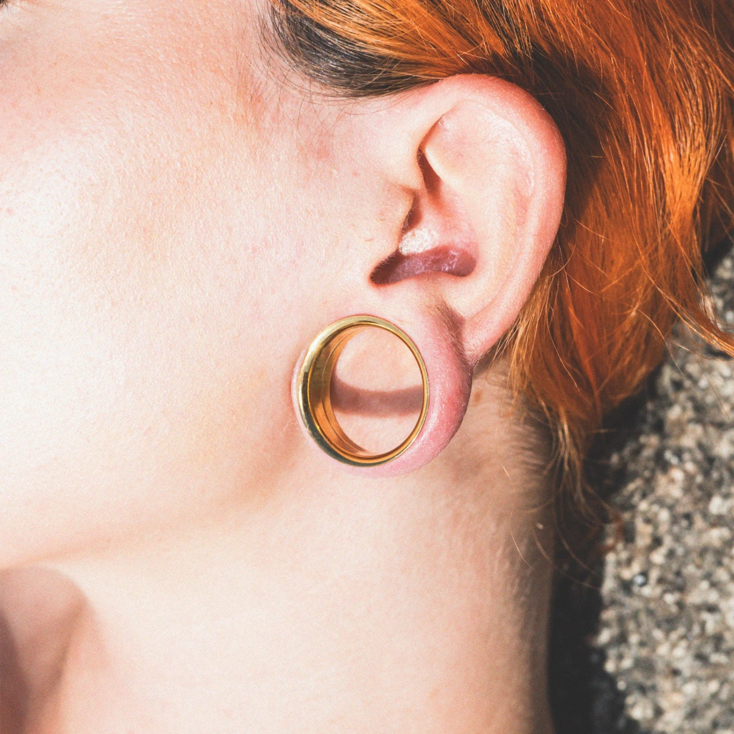 Stunning gold PVD coated surgical steel flesh tunnels. PVD coating with internally threaded screw fit flare for easier insertion. Physical Vapor Deposition is a process that coats a base material, in this case, 316L Surgical Steel giving a desired colour or finish – basically, it makes steel look sexier.