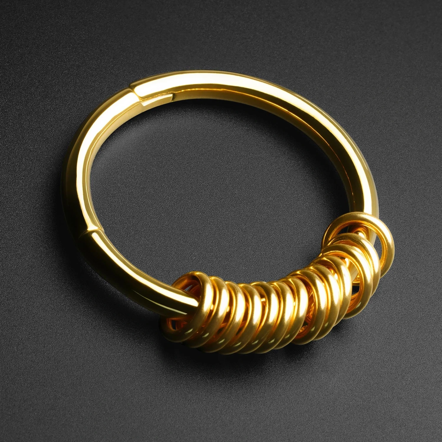 These gold coated PVD surgical steel magnetic multi hoop ear weights are sure to catch the eye! They look great when worn alone but can be used as a hanger for additional ear hangers; for comfortable weight distribution. A great addition to adorning those lobes!