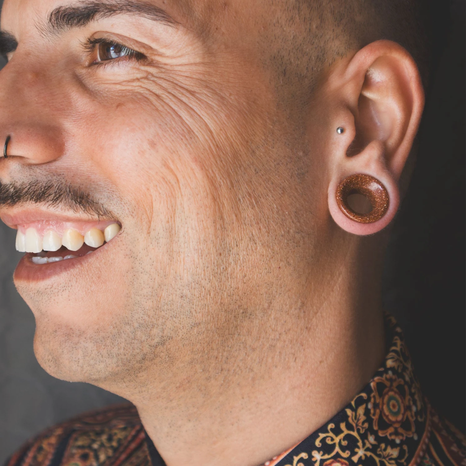Check out these Gold Sandstone Double Flare Stone Tunnels, hand polished and super smooth. They come in a concave finish making them super lightweight for stone jewellery. Immaculate polish throughout.