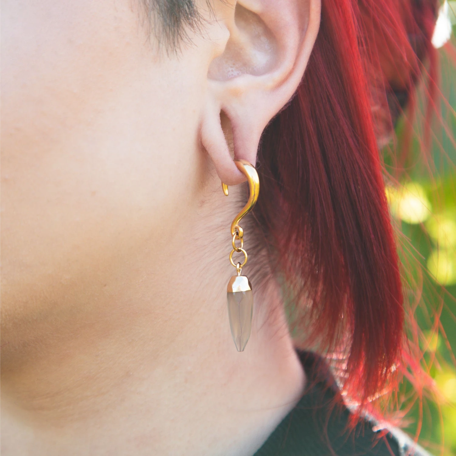 Facet cut in a pendant style, these super lightweight Grey Agate ear hangers are perfect for everyday wear.