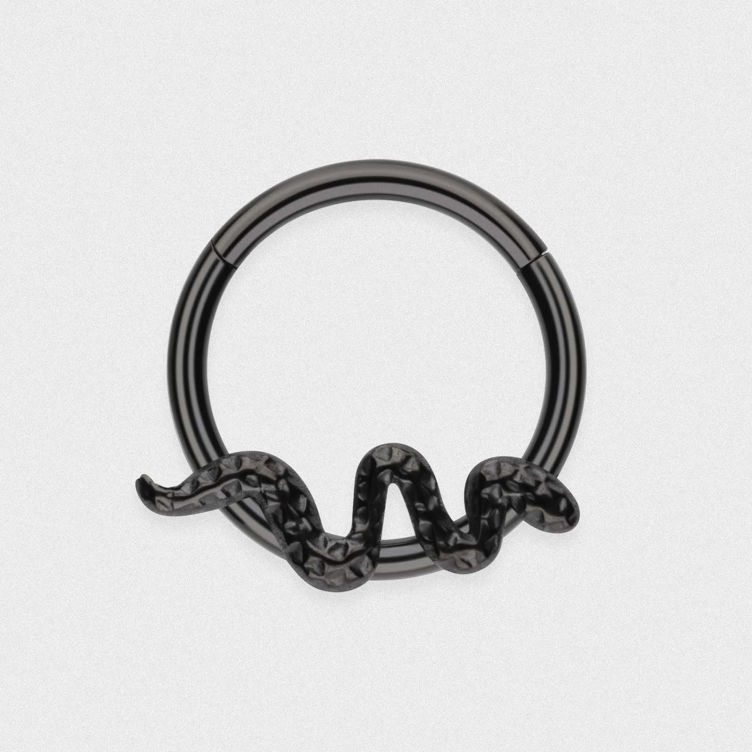 These Hammered Snake-shaped implant-grade titanium hinged segment rings are an absolute staple piece of jewellery in anyone’s collection. Body piercing rings can be worn in pretty much any piercing from nose rings to simple earrings, we’ve got you covered with the huge selection of available gauge sizes and diameters to ensure the perfect fit!