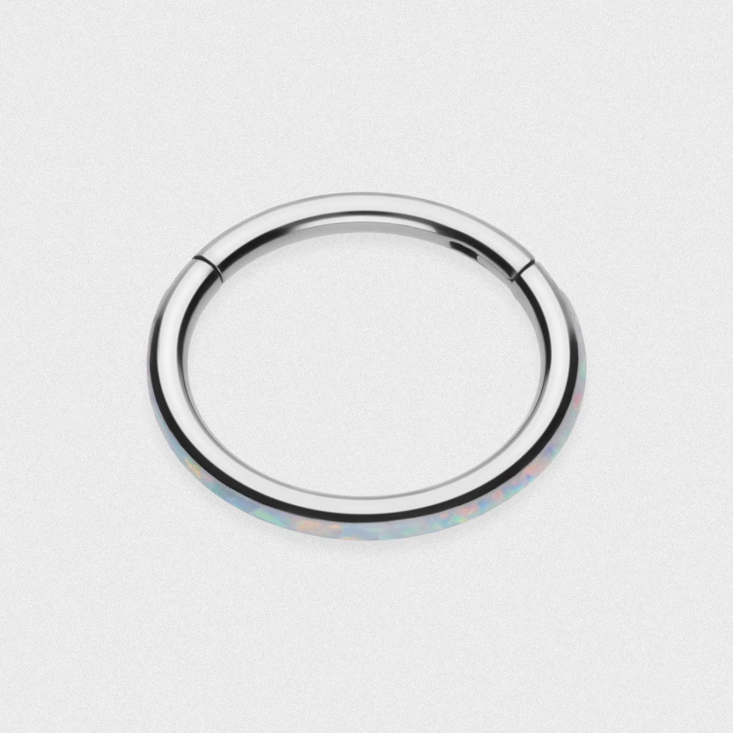 These Inlaid Fire & Snow Synth Opal implant-grade titanium hinged segment rings are an absolute staple piece of jewellery in anyone’s collection. Body piercing rings can be worn in pretty much any piercing from nose rings to simple earrings, we’ve got you covered with the huge selection of available gauge sizes and diameters to ensure the perfect fit!