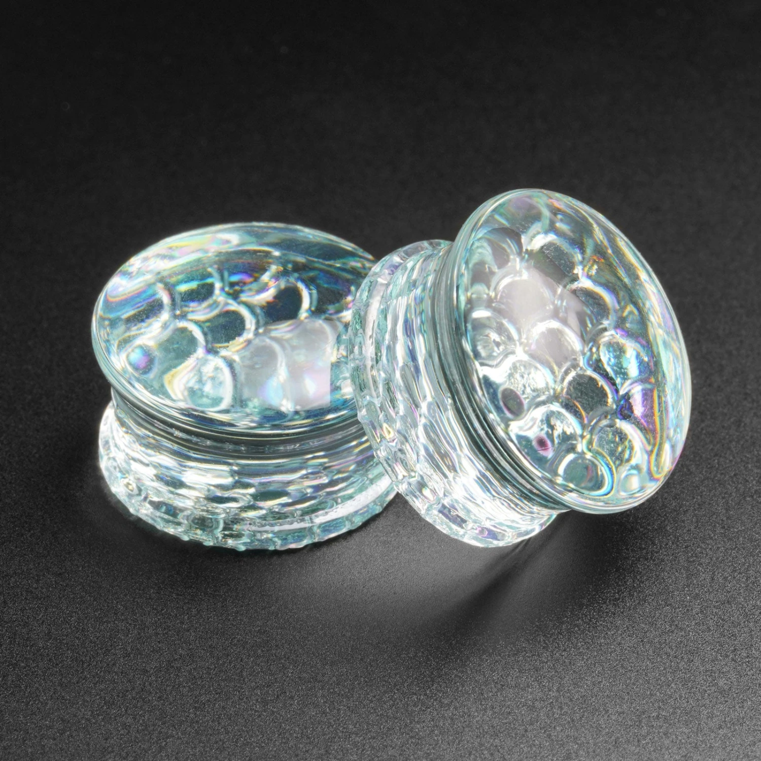 These clear glass plugs with a textured Irridecent mermaid scale backing are absolutely magical; with glimpses of flashing colours as they catch the light. A cute and quirky plug to add to the collection!