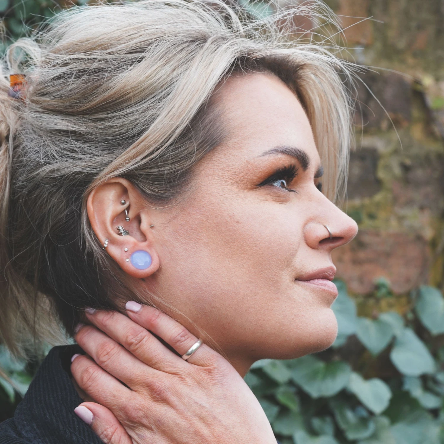 Handcrafted and polished to a smooth flat finish these pretty plugs are a dreamy mix of pink and purple. An Opalite delight! The single flare style makes these super easy to insert!