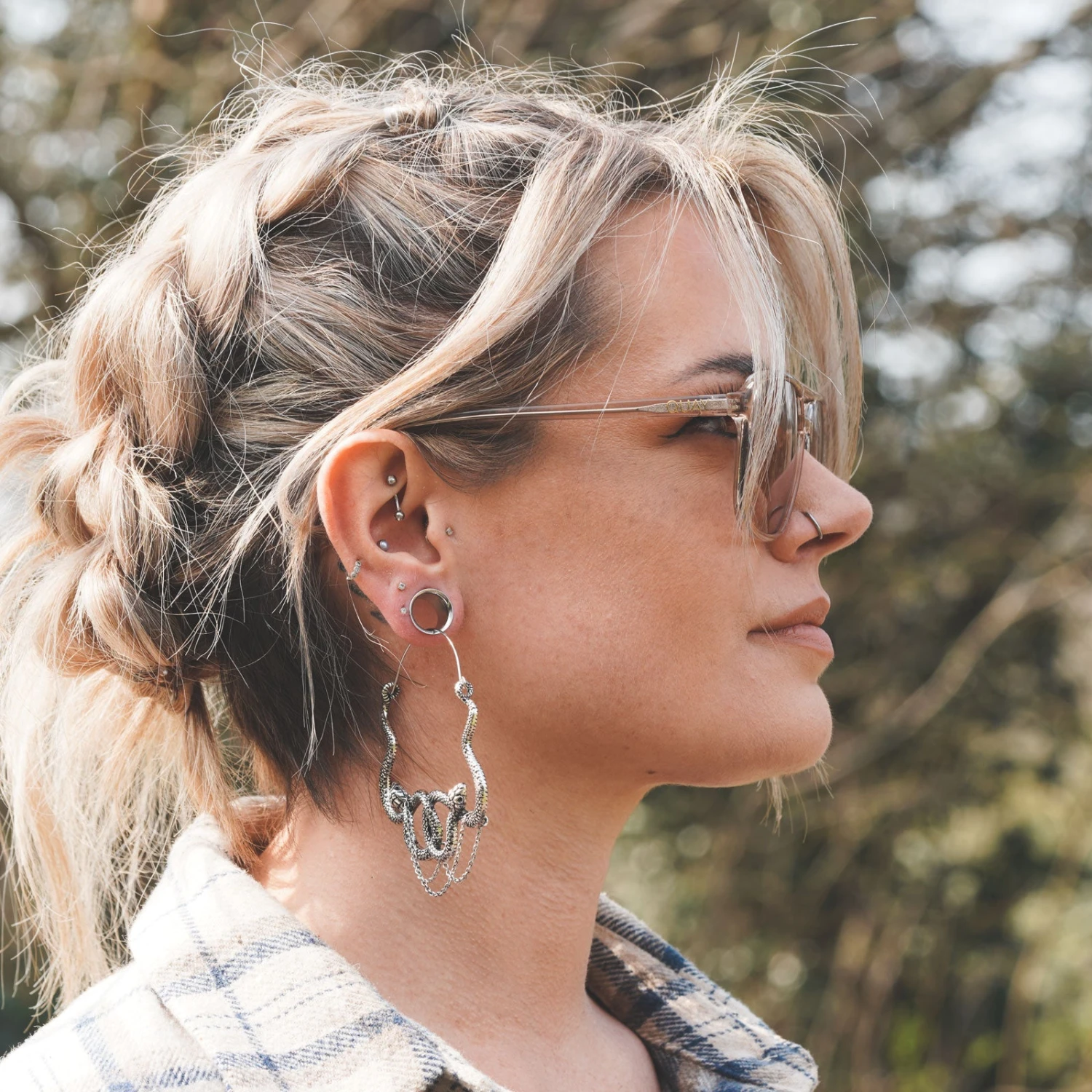 Accessorise your stretched lobes with these awesome plug hoops. Designed to be worn through all types of flesh tunnels and also in standard pierced lobes. Crafted from 316L Surgical Steel.