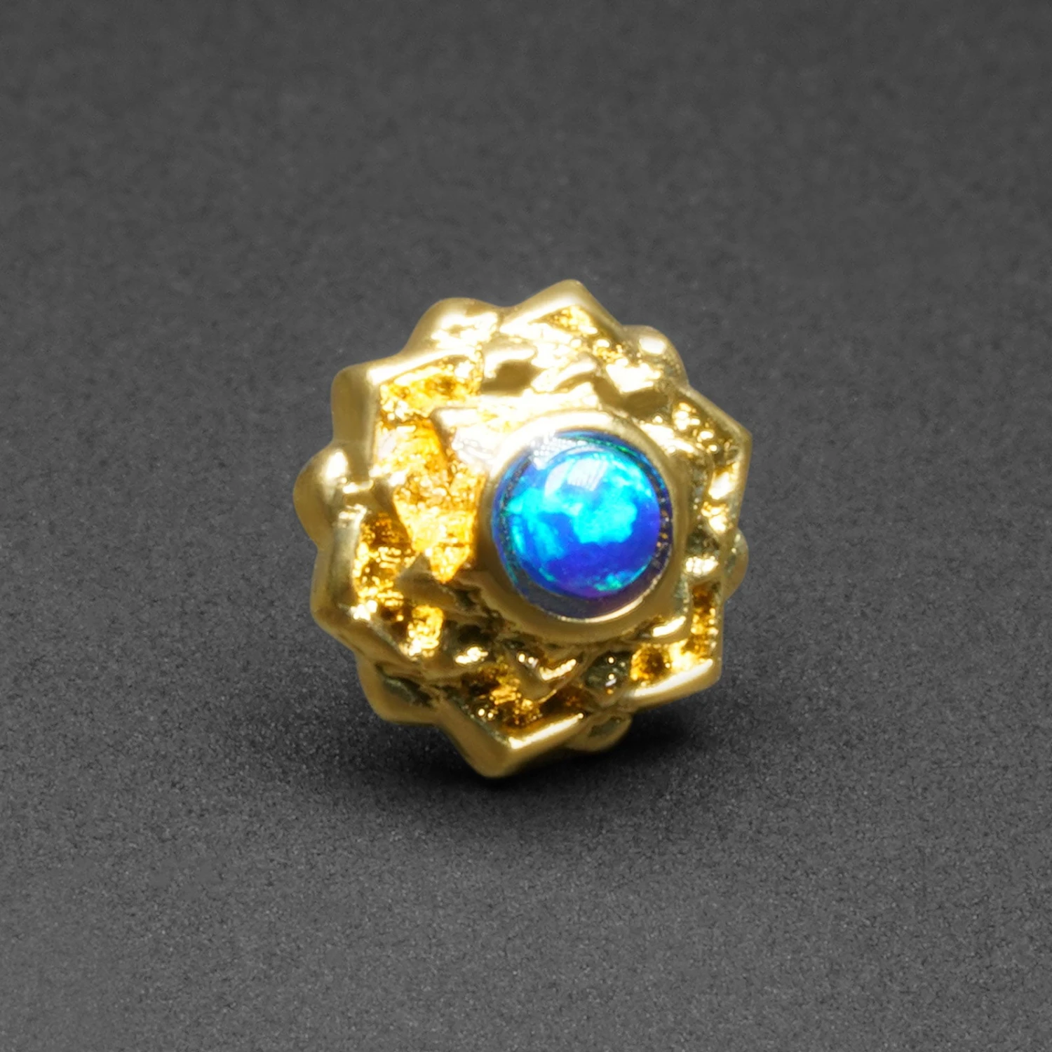 Swap out your bland jewellery with these stunning Lotus Flower Synth Blue Opal threadless tops. Handcrafted from Italian brass and plated with 18k yellow gold.