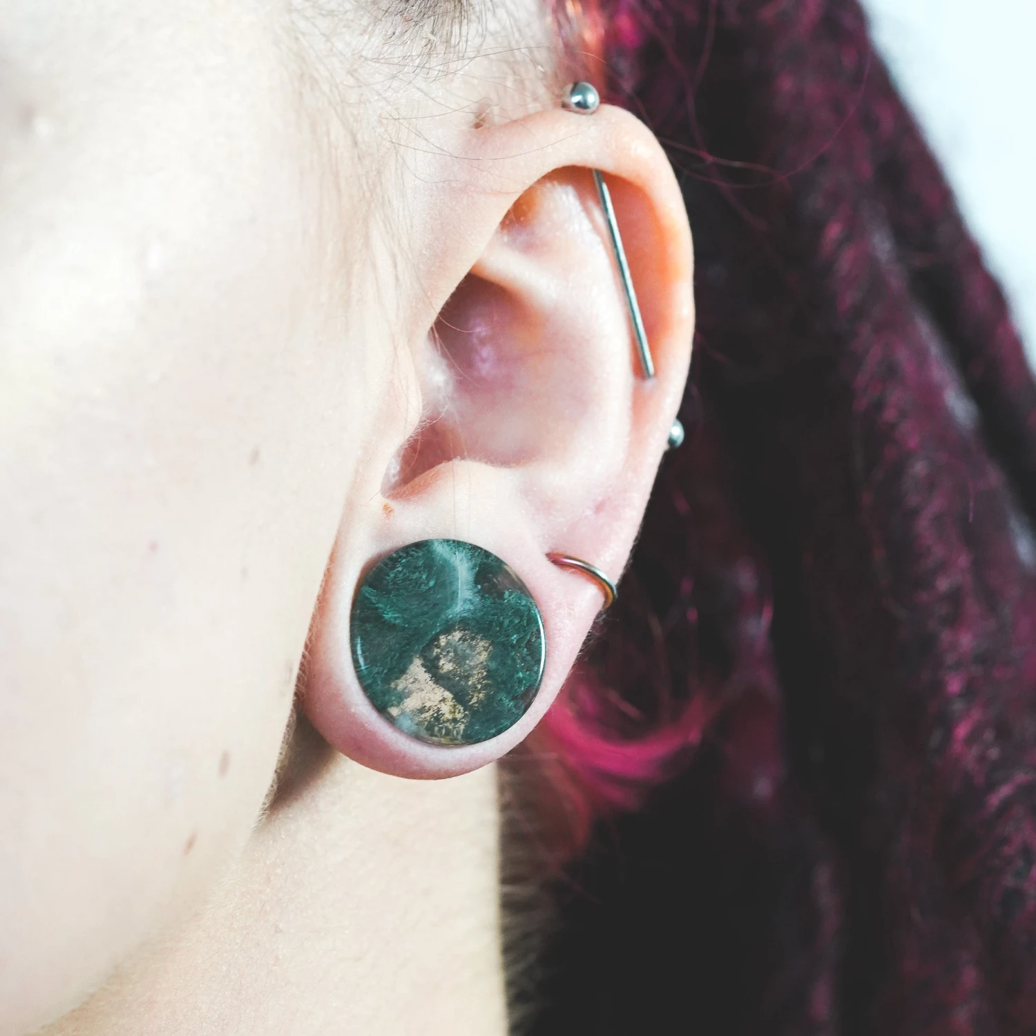 Many people consider glass as being the ultimate material for jewellery in stretched lobes. Glass is perfectly smooth and strong (don’t worry about these smashing in your lobe).
