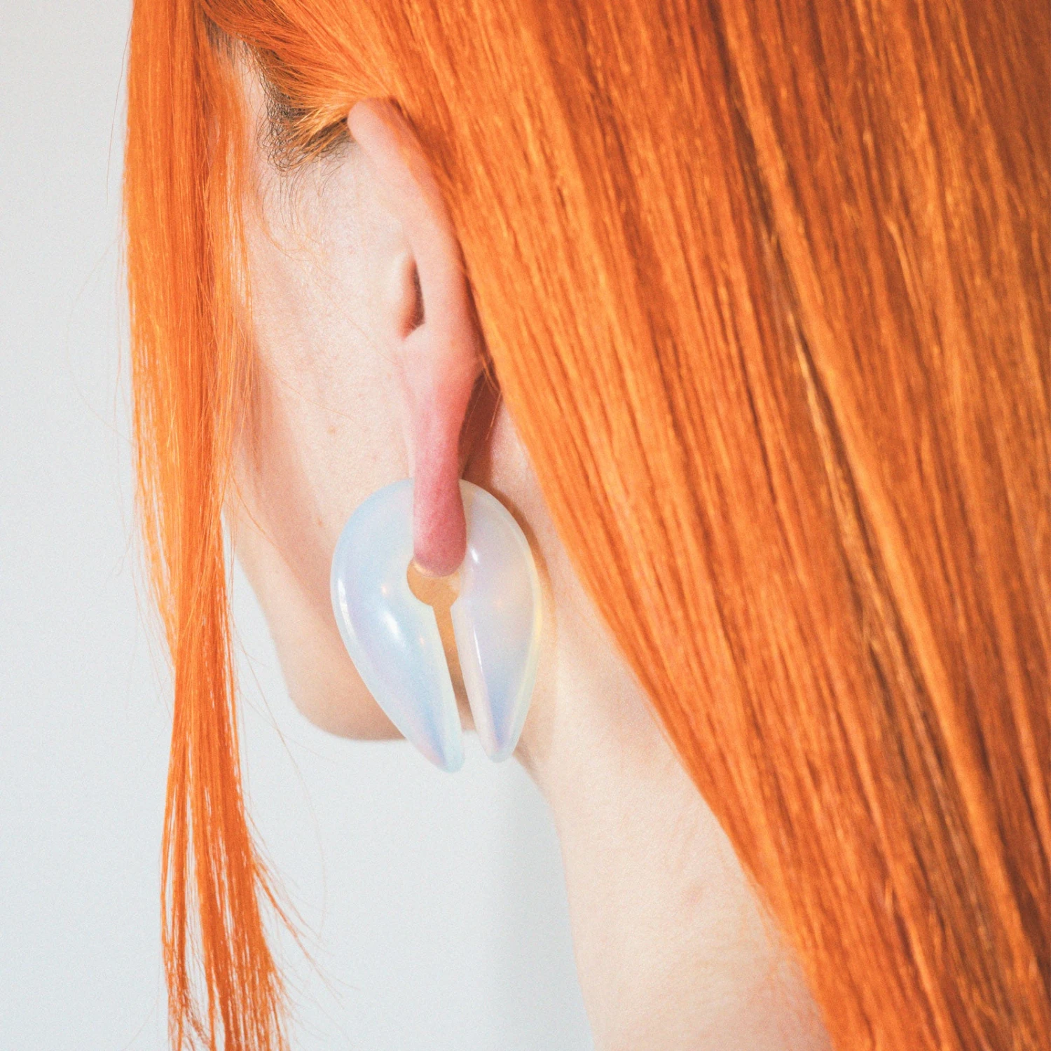 These Opalite keyhole design ear hangers will sure turn heads. Available in sizes Small, Medium and Large. You’ll need your ears stretched to at least 10mm (00g) to wear the small, 14mm (9/16″) to wear the medium size and 16mm (15/8″) to wear the large. Please be aware of this when selecting your size.