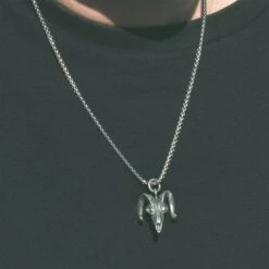 Bull Skull White Brass Pendant With Surgical Steel Box Chain