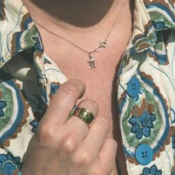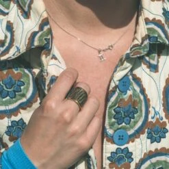 Brass Hearts & Picasso Jasper Pendant With 18k Gold Box Chain