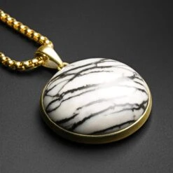 Brass Hearts & Picasso Jasper Pendant With 18k Gold Box Chain