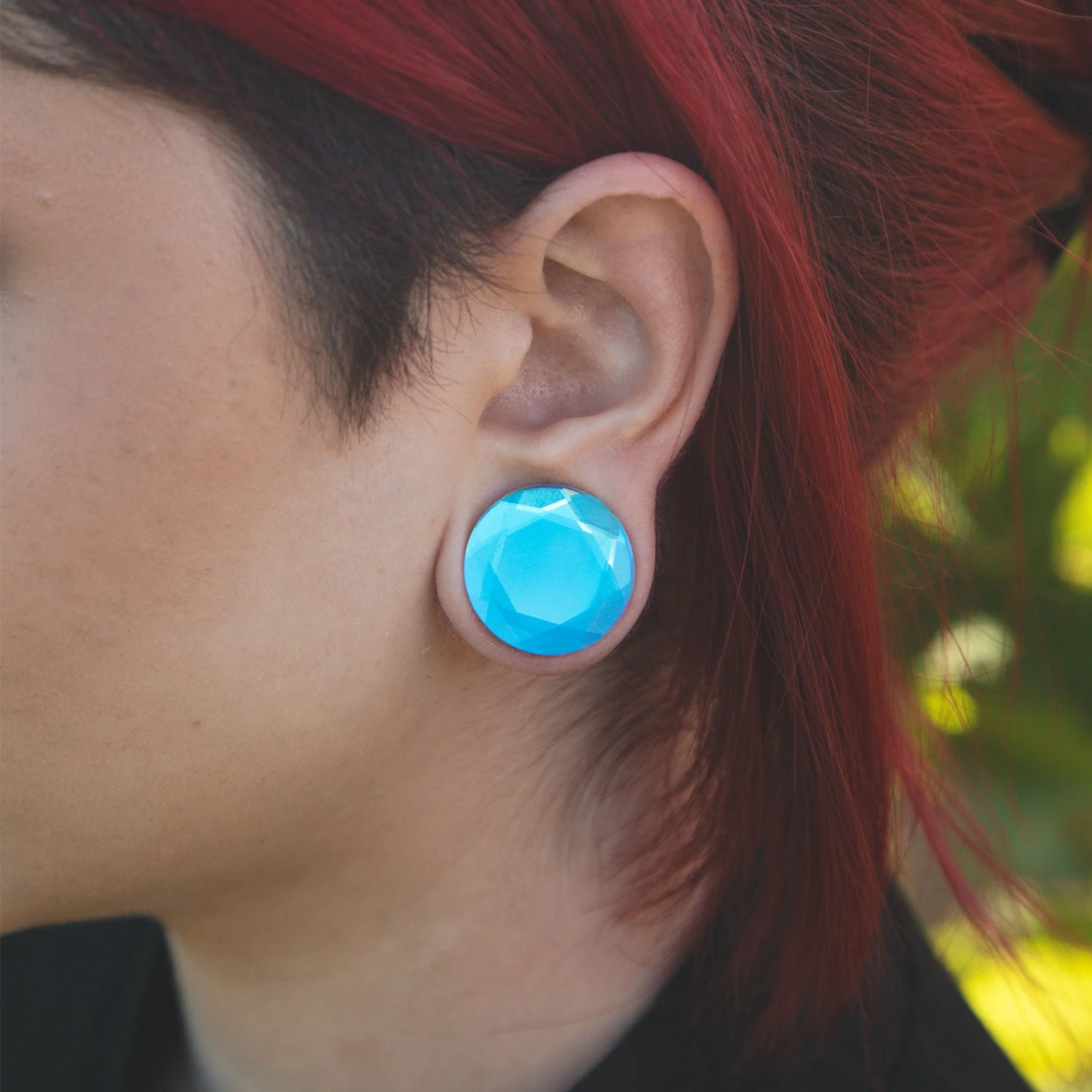 These purple faceted cut rainbow coloured glass flesh plugs are truly magical; Bring some disco fever to your lobes with these groovy glass plugs! Faceting is a cutting technique used on diamonds and creates stunning reflections on the face of each plug; these are accentuated when combined with clear glass and coloured coating.