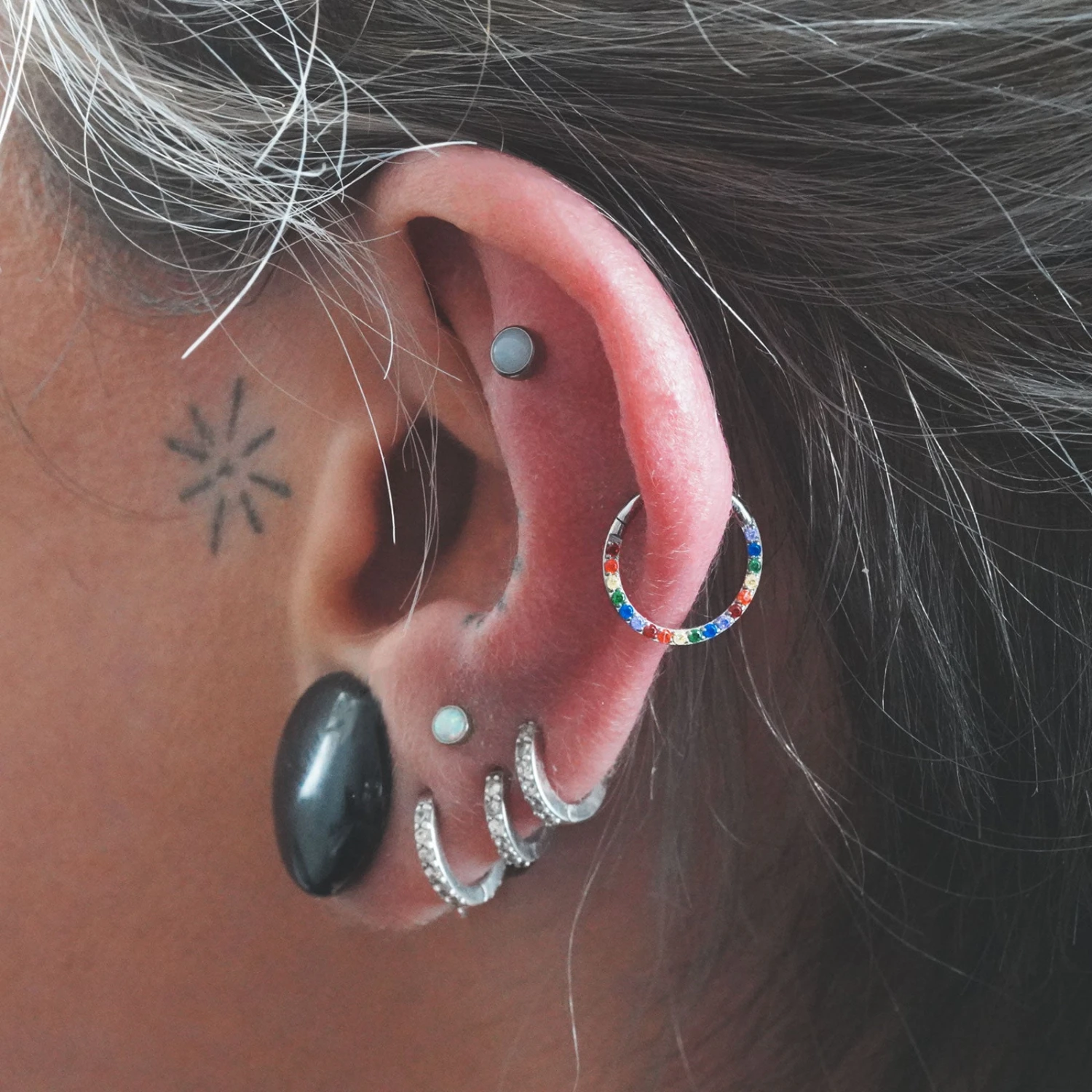 These Rainbow bejewelled implant-grade titanium hinged segment rings are an absolute staple piece of jewellery in anyone’s collection. Body piercing rings can be worn in pretty much any piercing from nose rings to simple earrings, we’ve got you covered with the huge selection of available gauge sizes and diameters to ensure the perfect fit!