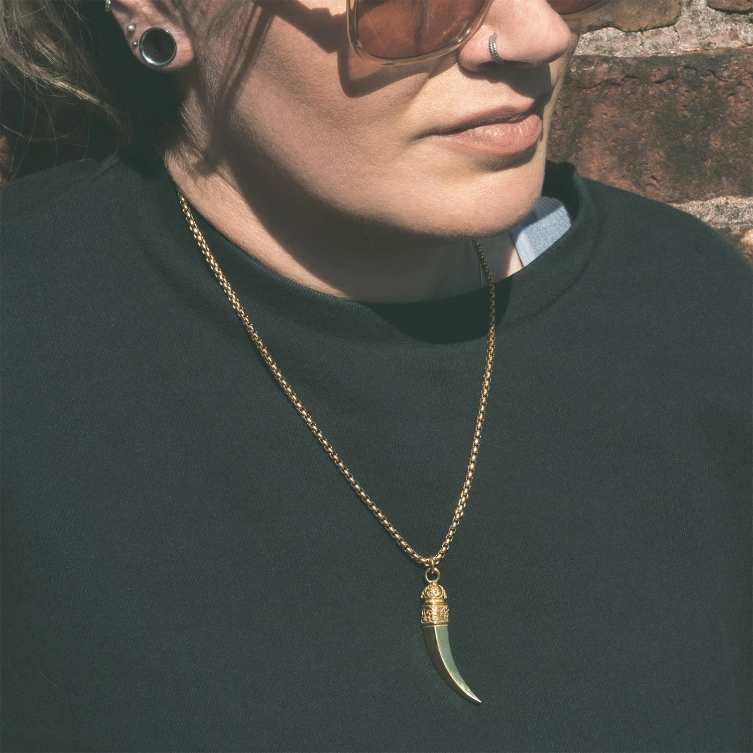 Saber Tooth Brass Pendant With 18k Gold Box Chain