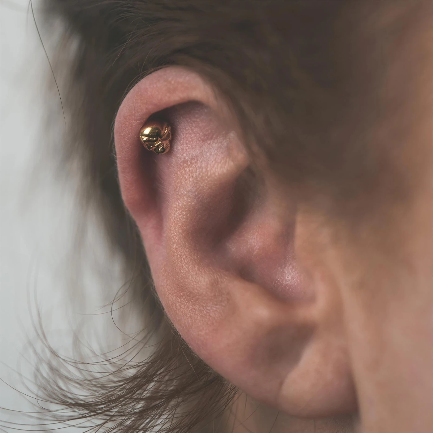 Our threadless tops make switching up your jewellery style fast and safe. Simply insert the top into your threadless bar halfway and bend slightly. This small bend will give just enough friction to hold the top in place, the larger the bend the more resistance.