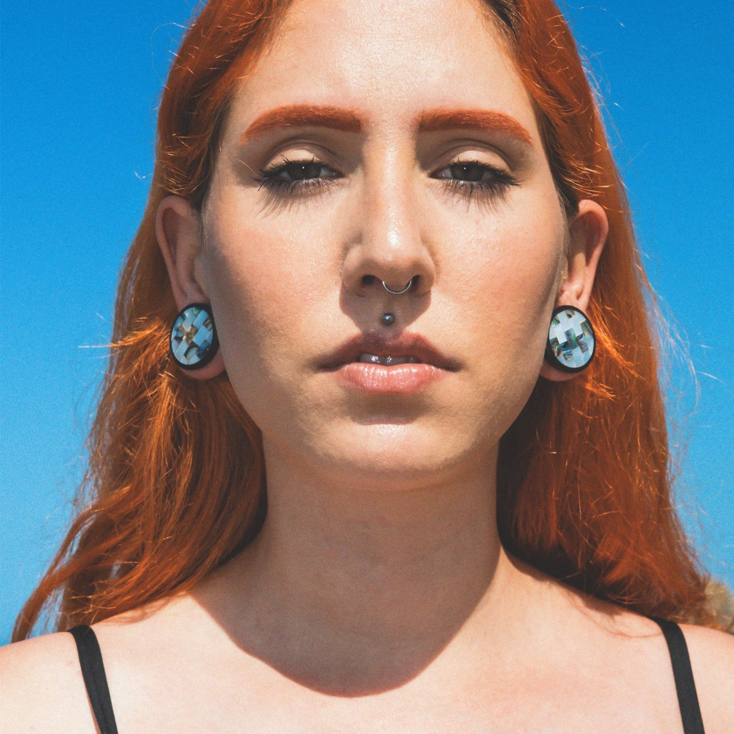 Classic and sophisticated, genuine abalone shell elegantly mosaiced with mother of pearl is perfectly inlaid into these beautiful Sono wood plugs. Highly polished and smooth organic wooden plugs.