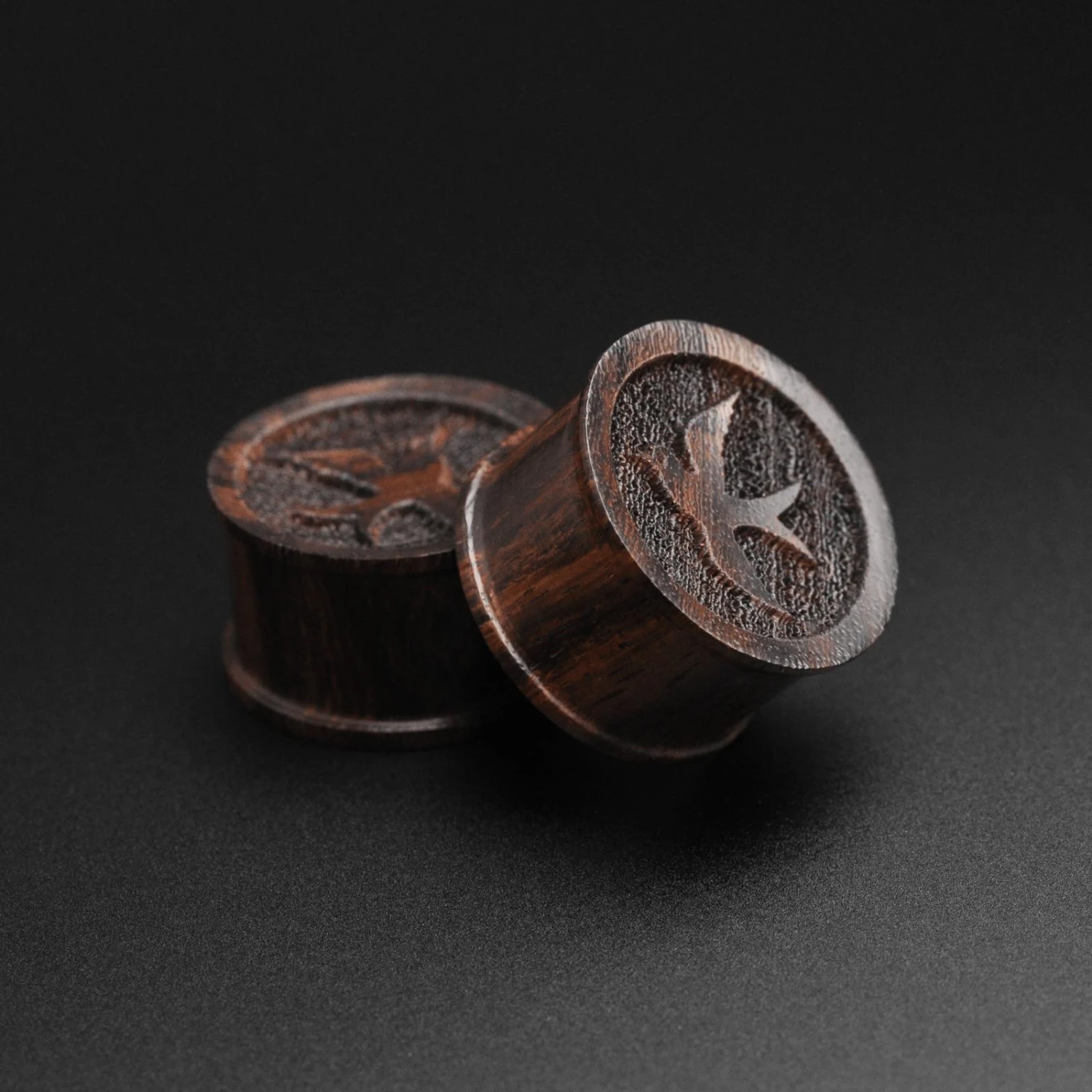 Iconic swallow design expertly engraved onto beautiful sono wood flesh plugs.