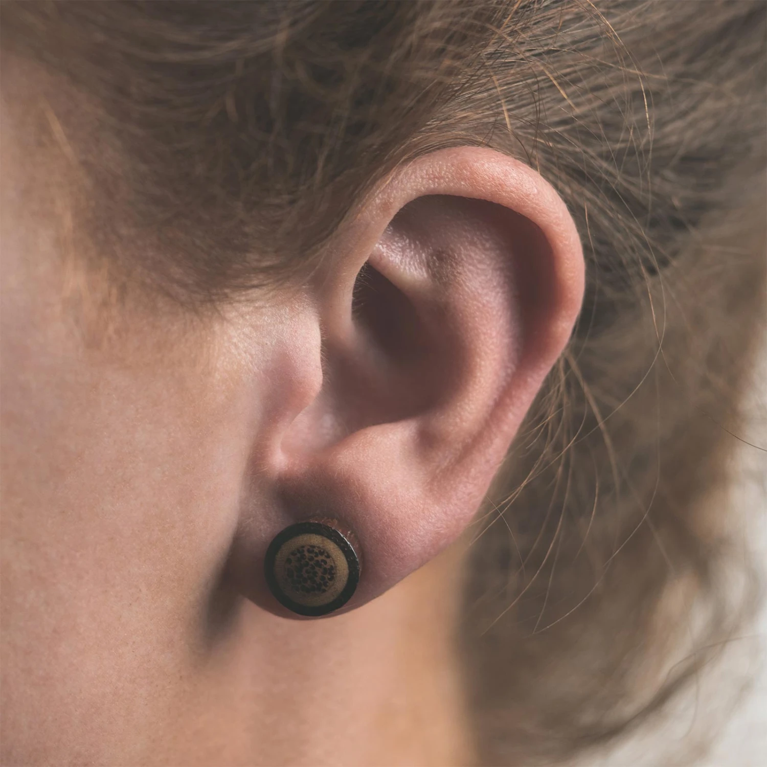 Sono Wood Fake Gauge Plug With Coconut & Crocodile Wood Halo Inlay
