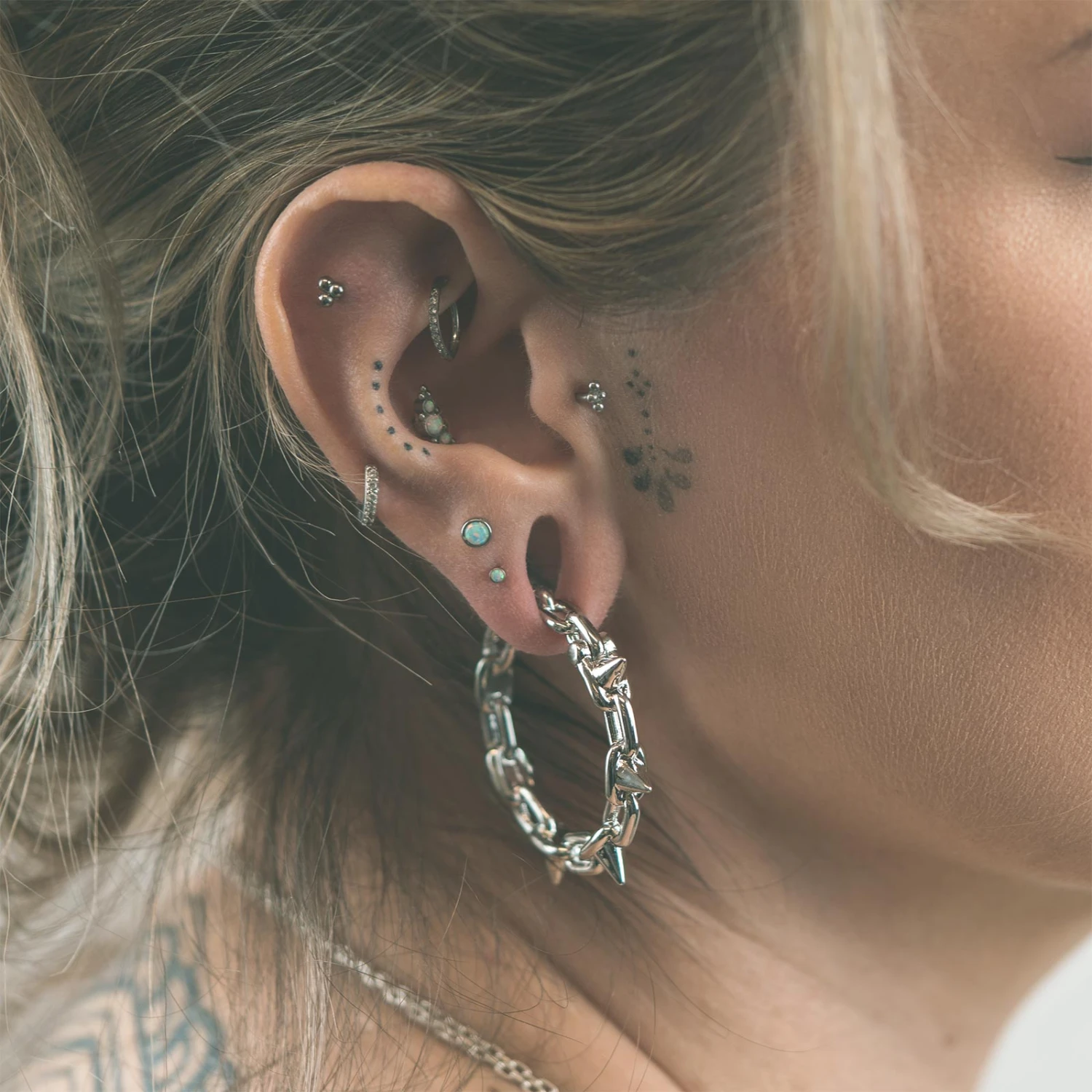 - Eye-catching Spike Chain Hoop design adds sophistication and individuality to your stretched lobes.