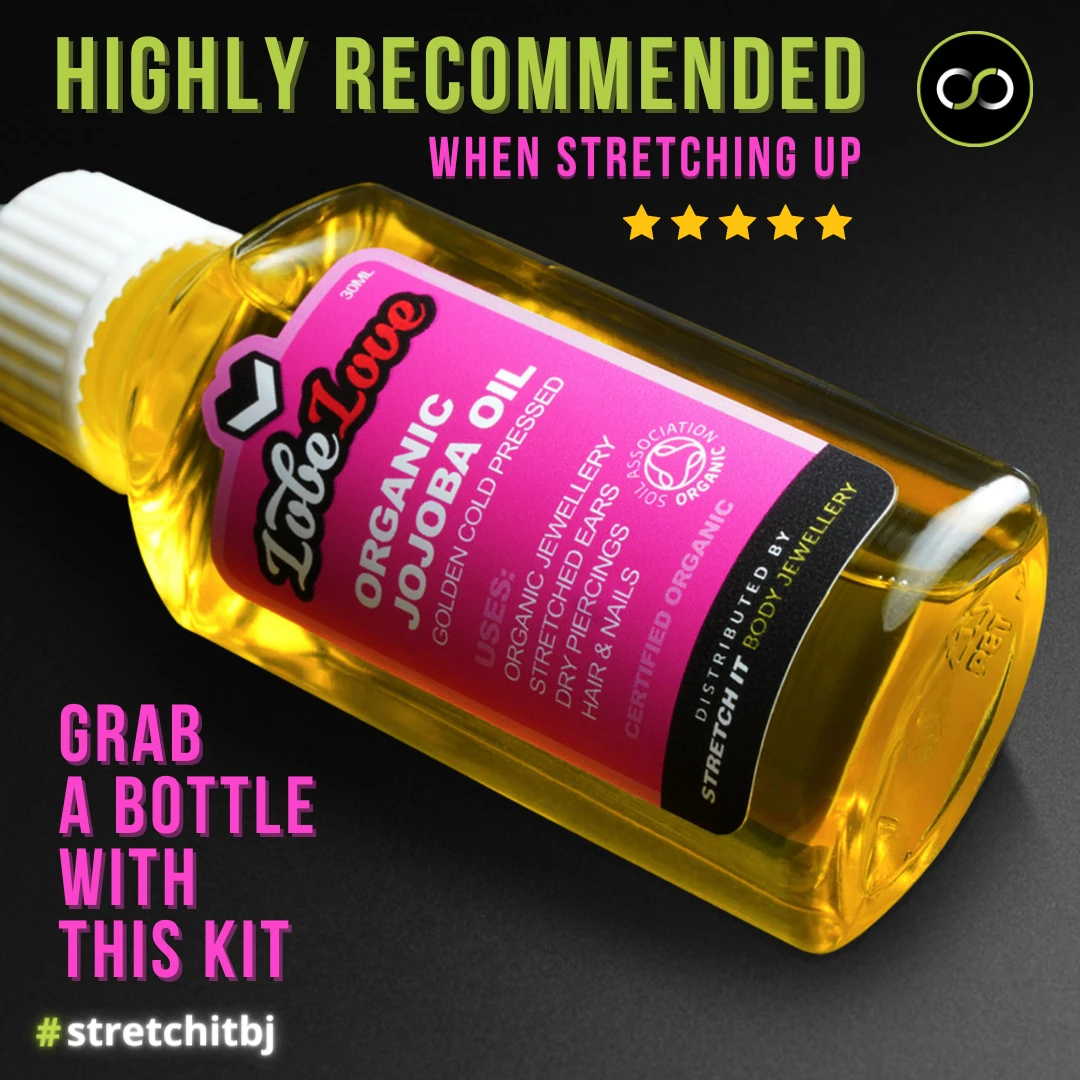 Available in three kit sizes all with plug double-up options for those stretching both lobes.