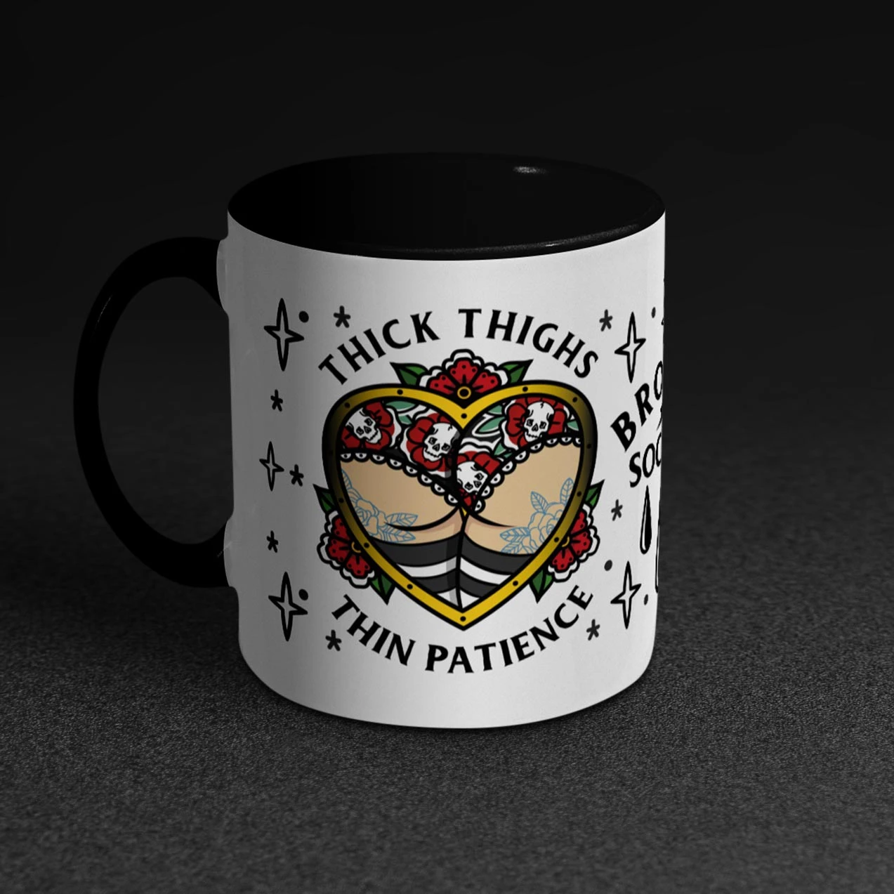 Start your day with attitude and style with the Broken Society Mug. Perfect for coffee, tea, or your favorite beverage, this mug features bold tattoo-inspired artwork that makes every sip a statement.