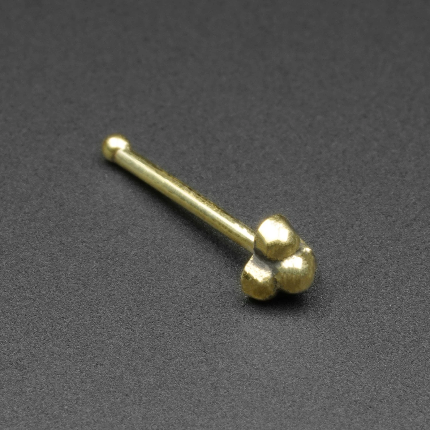 This type of nose stud works by having a fixed ball slightly larger than the bar gauge size to keep the stud securely in place. These triple dot design nose bones are crafted from Italian brass that is free from lead, nickel, and cadmium.