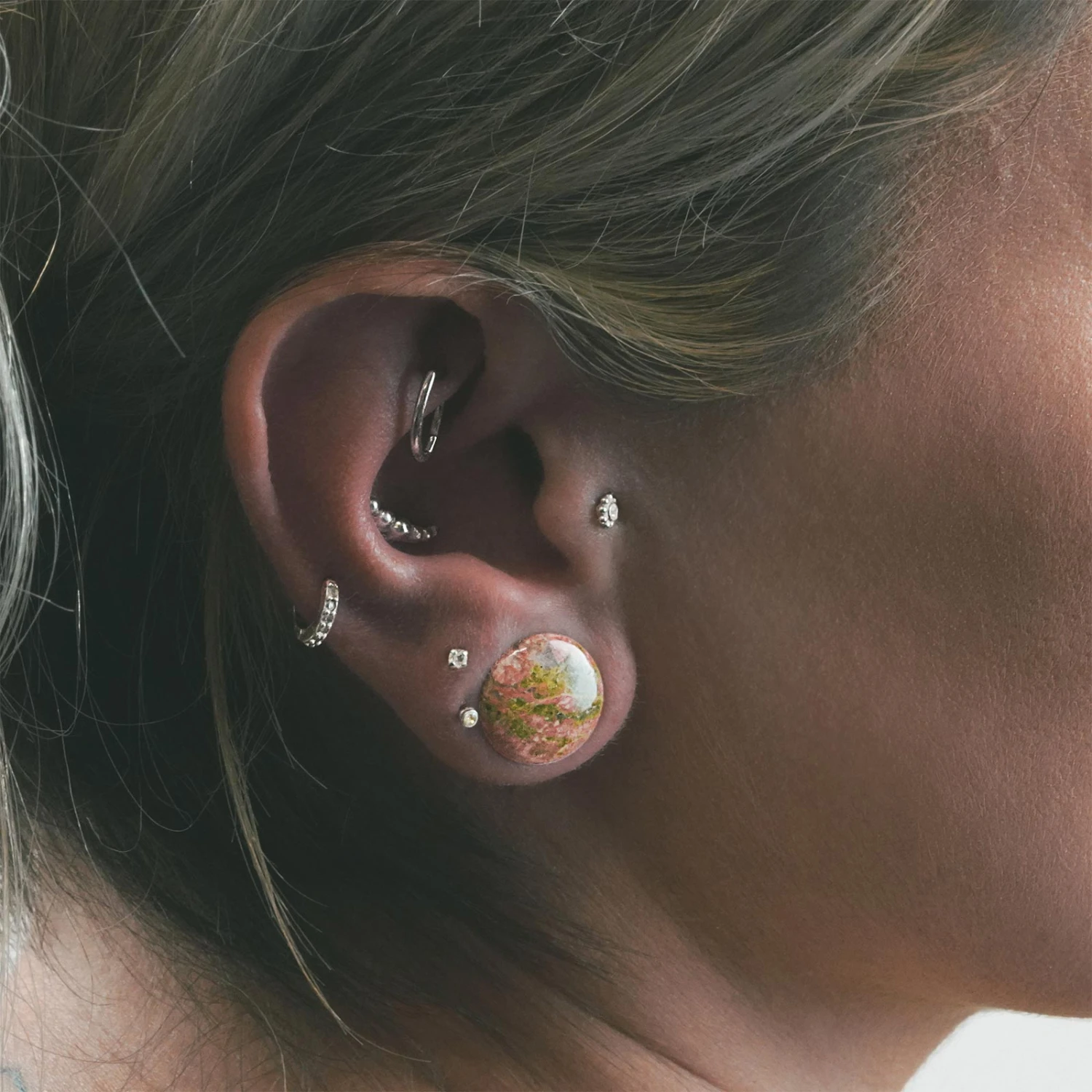 These Unakite plugs have the most amazing natural patterns of contrasting green and red. A unique stone and festive favourite! These beauties are handcrafted and polished to a perfectly smooth finish.