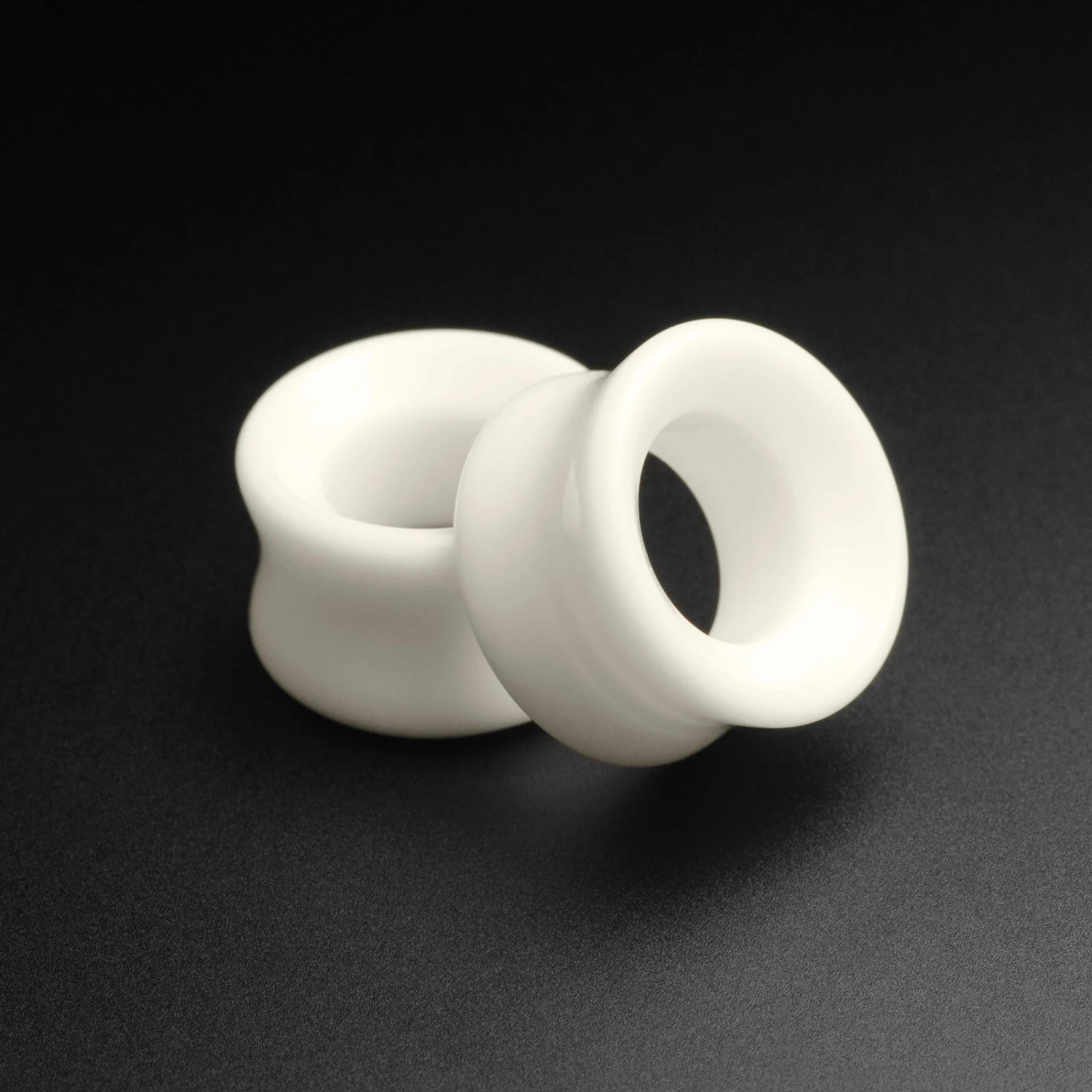 Many people consider glass as being the ultimate material for jewellery in stretched lobes. Glass is perfectly smooth and strong (don’t worry about these smashing in your lobes). These come in a perfectly smooth concave face finish.