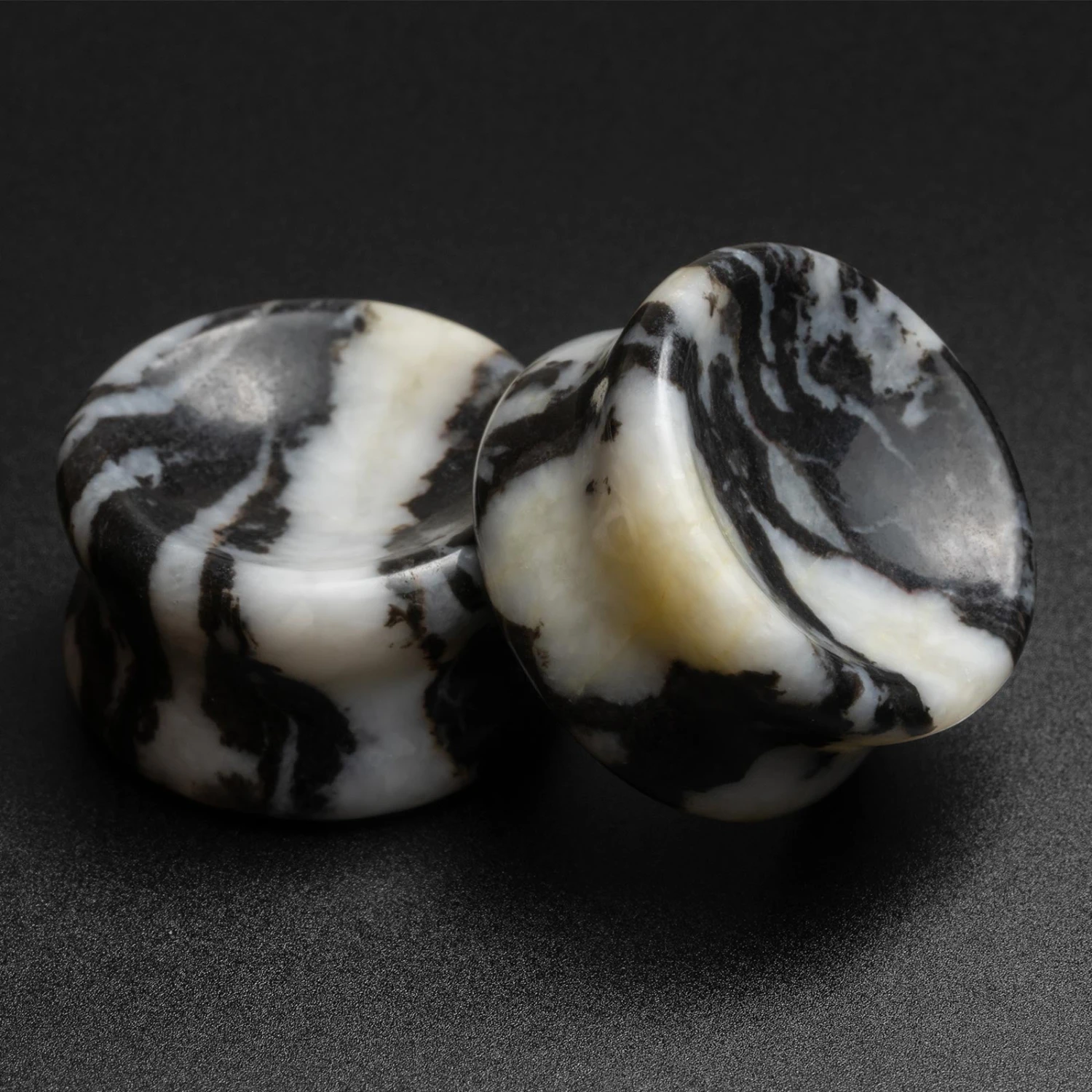 These black and white zebra jasper double flared plugs have beautiful, marble-like patterns within the stone.